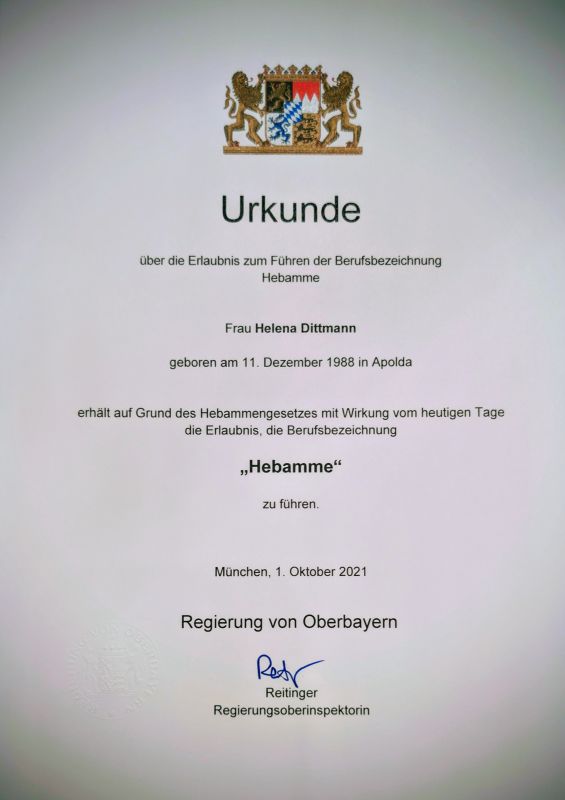 Seitdem biete ich als freiberufliche Hebamme das breite Spektrum an Hebammenleistungen an und bin zusätzlich geburtshilflich im Kreißsaal Dachau tätig.